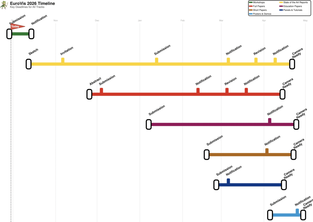 Click on the link to Explore the Eurovis 2026 CfP timeline. Timeline courtesy of Velitchko Filipov, Vienna University of Technology.